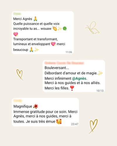 C’est un vrai plaisir pour moi de les canaliser et de les transmettre. Je suis d’ailleurs souvent inclue dans ces soins.